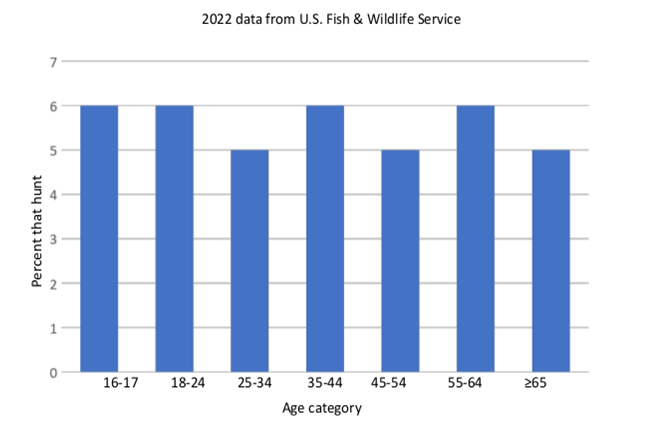 In addition to bemoaning a shrinking hunter population, news outlets including The Washington Post, The Denver Post, NPR, and Outdoor Life have been sounding the alarm about the aging hunter population for decades. The narrative has been that as older hunters retire from the pastime there will be nobody to replace them. Now, according to 2022 data from the U.S. Fish and Wildlife Service, there is ZERO evidence the hunter population skews older, and the media outlets are silent.